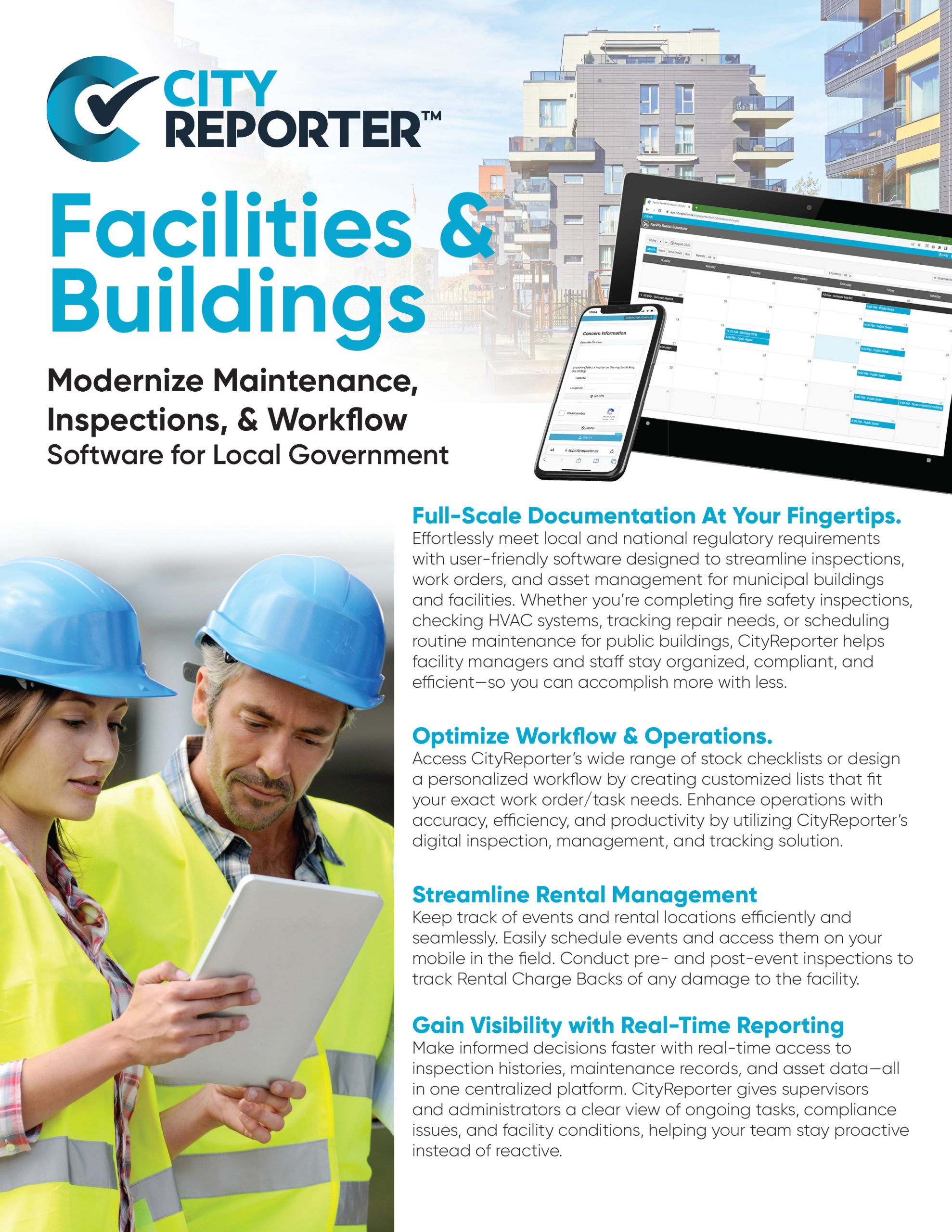 Elevate your facility maintenance with CityReporter’s Facility Management software and experience the power of digital inspections, real-time scheduling, and state-of-the-art GIS mapping.